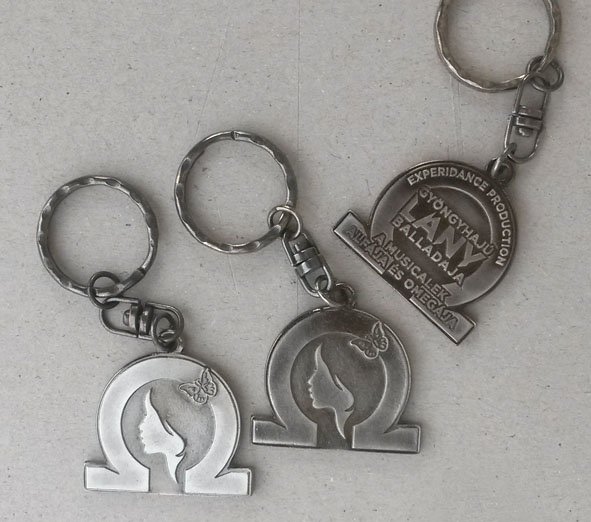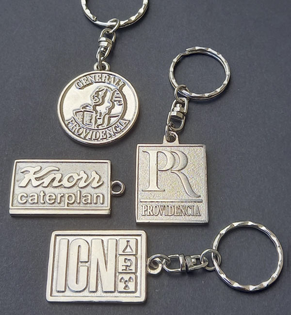 Precíziós öntéssel készül. A fém plakettát egyedi kívánság szerint tervezzük meg kb. 0,4 mm kiálló, vagy bemélyedő rajzolattal. A bemélyedő rész festékkel is kitölthető. A féldombor (3D), vagy relief kulcstartó különlegesebb tervezést igényel. A kulcstartók színét a galván bevonat adja, ami lehet nikkel, sárga, vagy vörösréz. Antik hatást is elérhetünk, ami különösen féldombor, vagy bonyolultabb rajzolatú kulcstartó esetében mutatós.